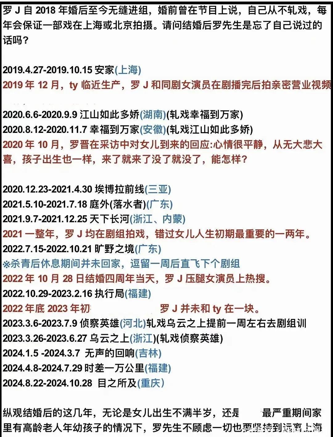 接着,还有唐嫣粉丝列出来了罗晋,一直是在无缝进组的时间线。比如:19年临近生产,罗晋还在不停的工作;20年的采访也很平静;反正就是一直是在剧组。